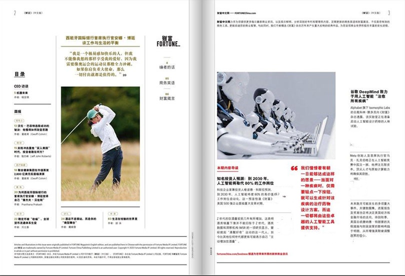 除了商业报道,杂志还关注社会和政治问题,并将其与商业活动紧密结合。它关注企业的社会责任和可持续发展,致力于推动商业界的社会意识和积极影响。同时,杂志还提供了一些关于职业发展和金融投资的建议,使读者能够更好地规划自己的职业和财务未来。《财富》杂志的内容不仅丰富多样,而且在视觉呈现上也非常精美。杂志以高质量的插图、照片和设计呈现,使读者在阅读的同时享受到视觉上的享受。
